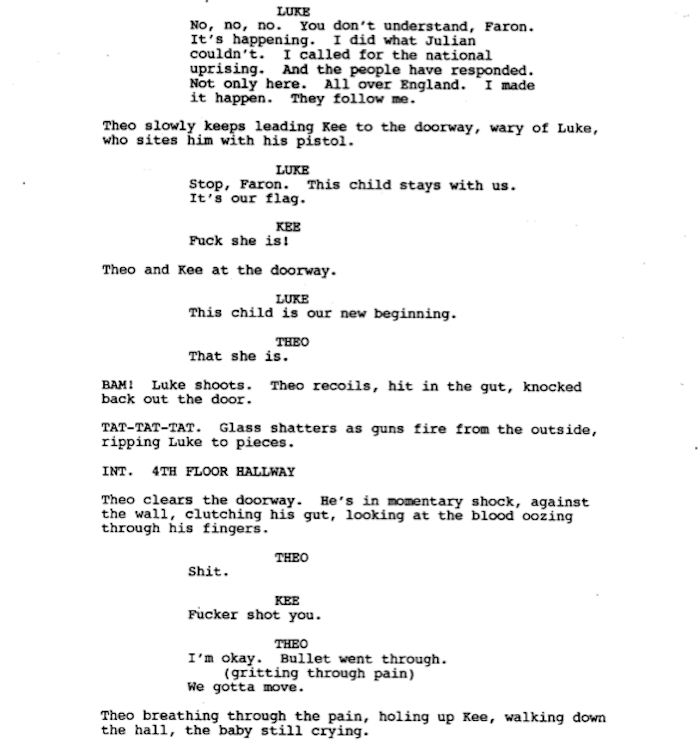 Scene setup: With all hell breaking loose, Theo finds Kee and the baby.